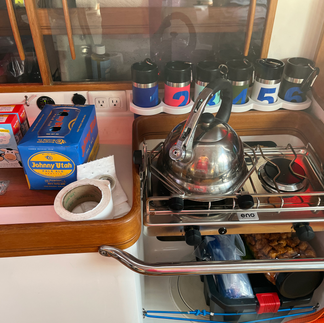 It was a mad scramble to get the boat ready for our trip. We hauled out the boat for a wash, zincs and checking the bottom paint. Then we added a third water bladder, pipe berths, lee cloths and some additional canvas work. Water and sleeping details at the last minute. There were a million other small tasks and securing of items on the boat.